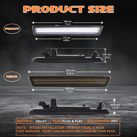 2015-2023 Dodge Challenger Widebody SCANNING White LED Smoked Side Marker Lights
