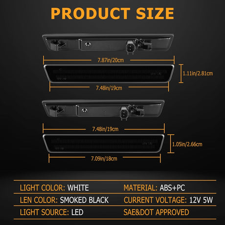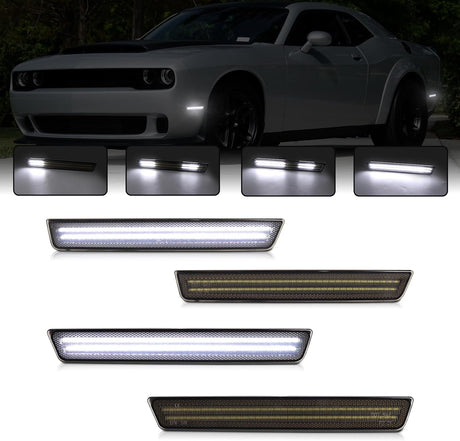 2015-2023 Dodge Challenger SCANNING White LED Smoked Side Marker Lights