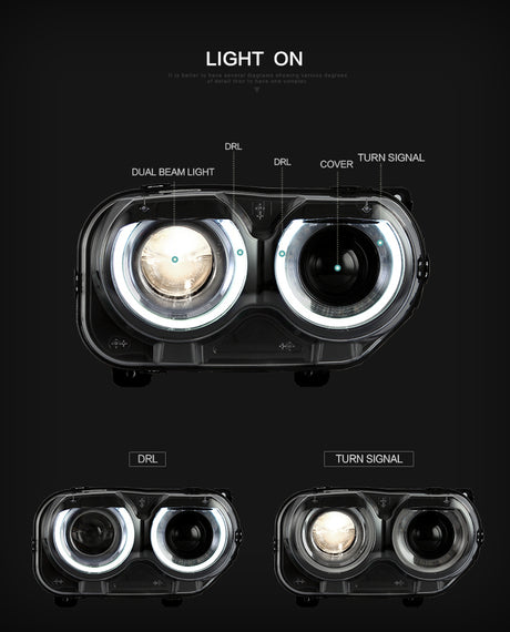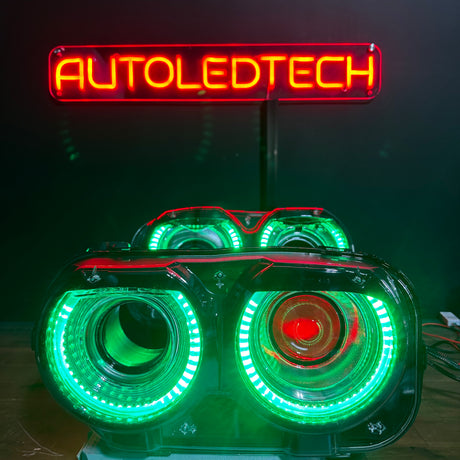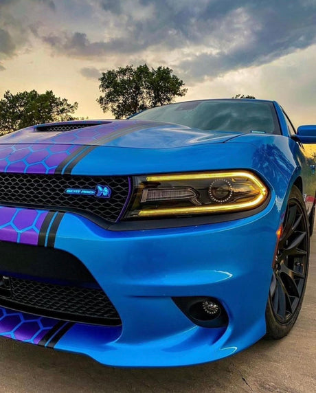 2015-2023 Dodge Challenger RGBW Flow Series LED Halo DRL Prebuilt Headlights
