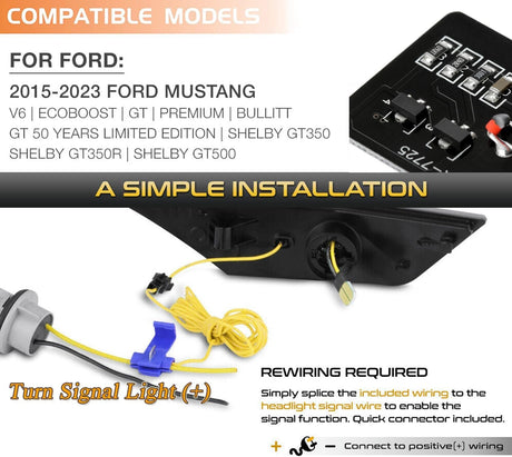 2015-2017 Ford Mustang Smoked Clear Sequential Switchback LED Turn Signal Lights