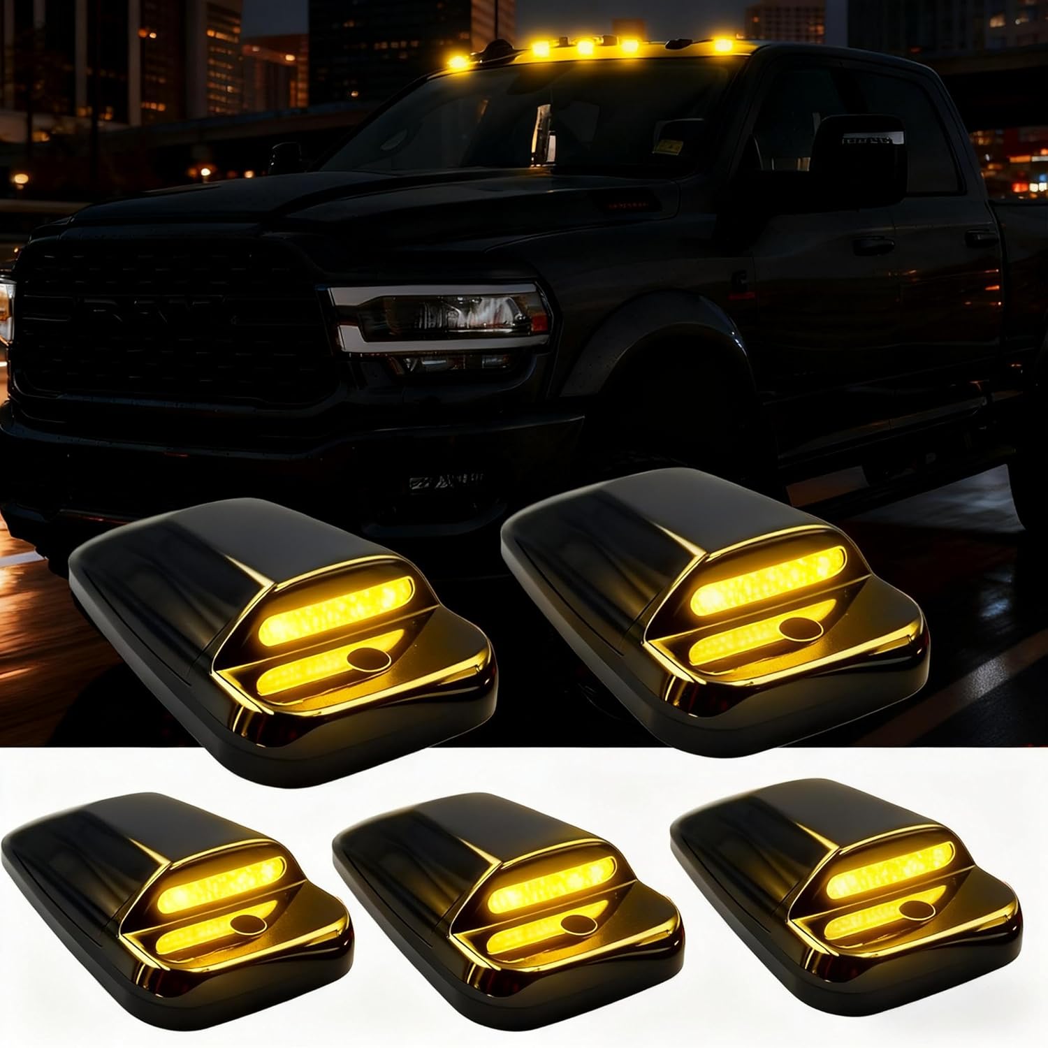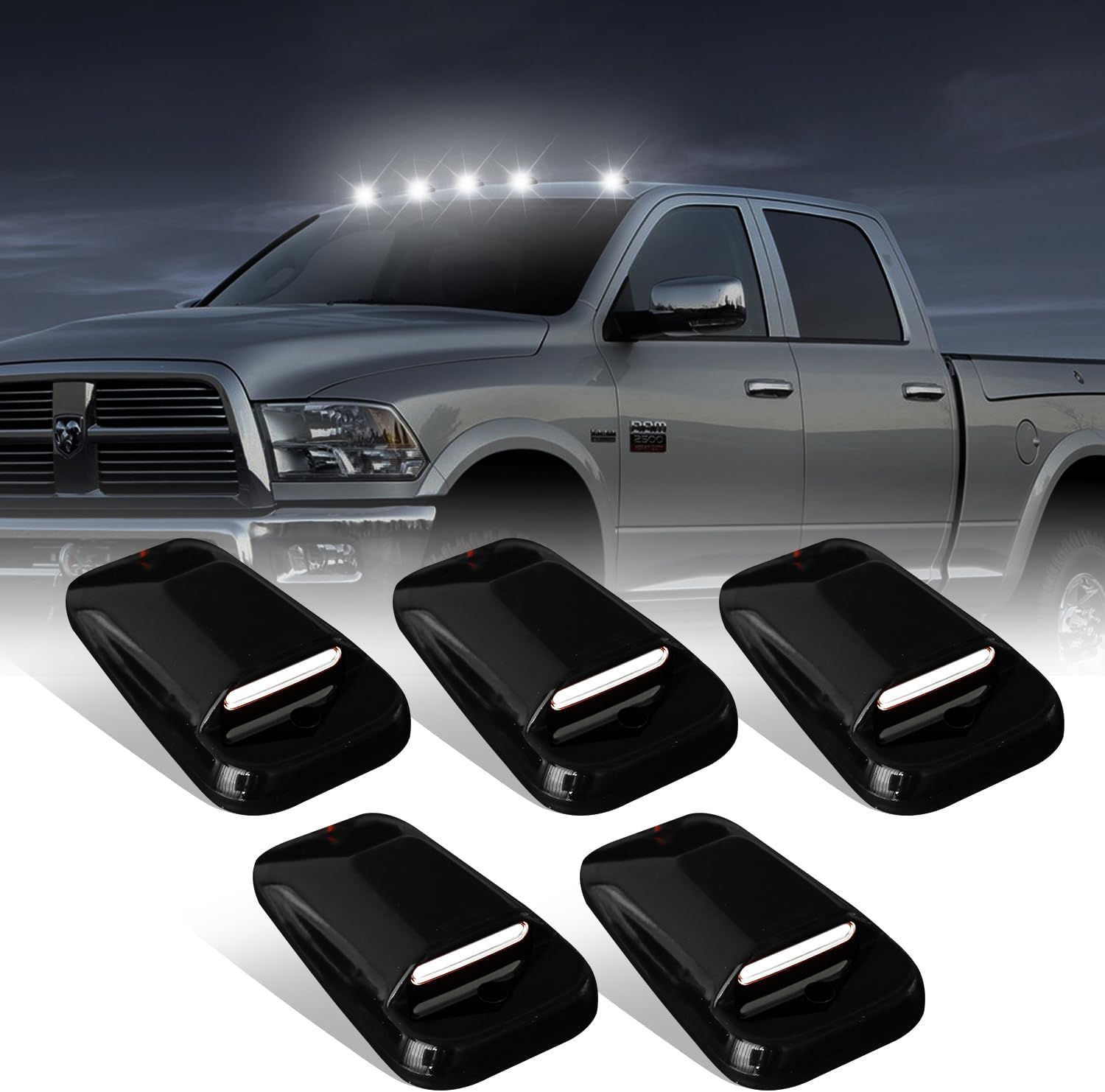 LED roof cab clearance marker lights available with smoked lenses, white or amber Slim-line LEDs for your 2003-2018 Dodge Ram HD 2500 3500 4500 truck. The LED cab lights are 300% brighter than stock, completely plug & play, and a breeze to install! Simply remove the screws from your existing cab lights, unplug them, plug the new cab lights in, then screw them back in. The new cab lights have 3 rows of LEDs, are IP67 waterproof rated against rain, snow, dust and have the screw hole within the assembly to ensure that no leaks occur. They also include new gaskets with an adhesive backing. By utilizing the factory screws for the rear of the cab lights, you eliminated poor fitment issues experienced with other aftermarket cab lights!