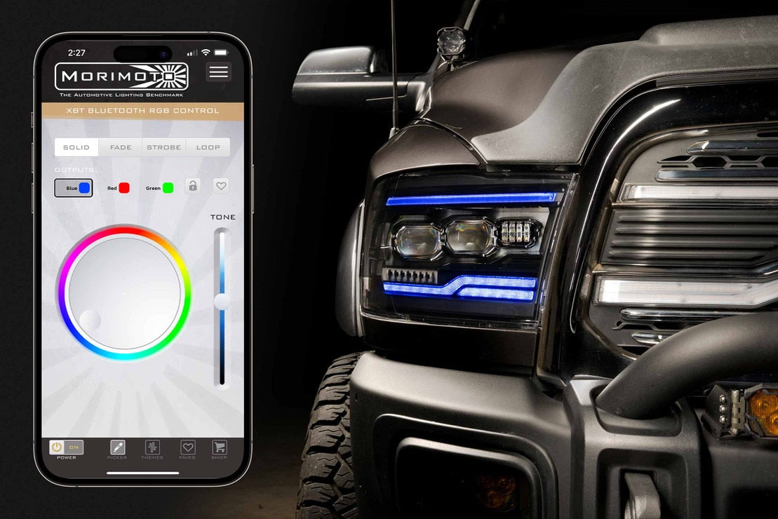 The XRGB Evo headlights for your 2009-2018 Dodge Ram 1500 and Ram HD 2500/3500/4500 truck are a showcase of everything Morimoto is made of. The daytime running light is Bluetooth app-controlled and can be set any color you can imagine. With the app turned off, the standard DRL can be configured to run full-time in either white or amber with no compromise in intensity either way. The signal swap system allows users to personalize how the daytime running lights and turn signals operate according to personal preference, all through a simple plug n play key on the back of each headlight. When starting your Ram, the optics will automatically illuminate in a multi-stage sequence before turning back off. XRGB Evo headlights aren't cheap, but they are built to a high standard and should easily last the life of your truck! We're proud to stand behind the product with an industry-leading five-year warranty. This is a plug-and-play solution for your 2009-2018 Dodge Ram 1500 & HD 2500/3500/4500 of any trim level. These will also fit 2018-2023+ Ram Classic models.