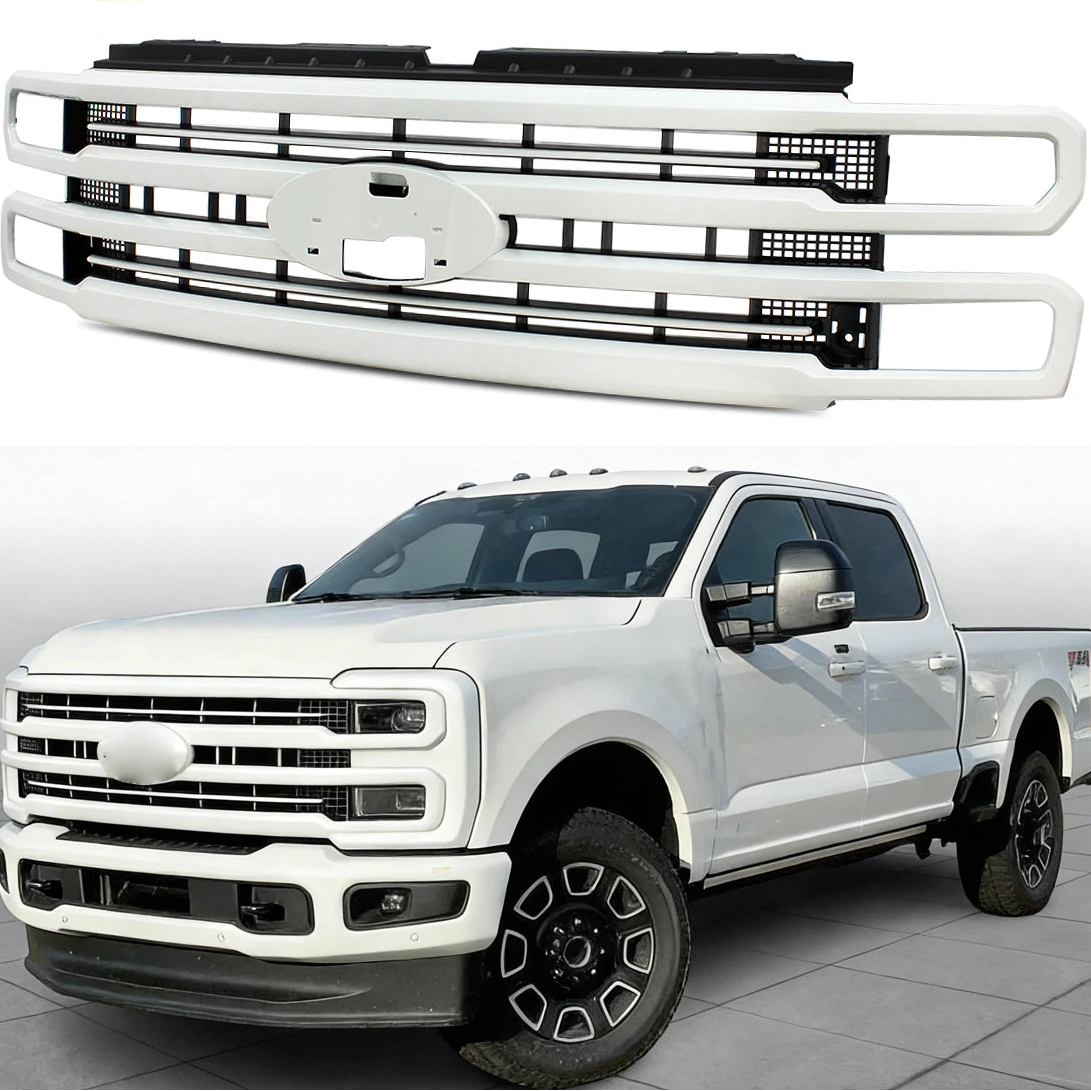 Gloss black, chrome, star white, iconic silver, or rapid/race red Platinum or Platinum Plus grill for your 2023-2026 Ford super Duty truck with the LED DRL headlights. If you are converting your truck from the base halogen headlights and grill to the LED reflector or LED projector headlights, you will need this grill to complete the conversion! The grill is made of durable ABS plastic and is painted gloss black or chrome. Optional - Add on the LED headlights or the LED Ford emblem!