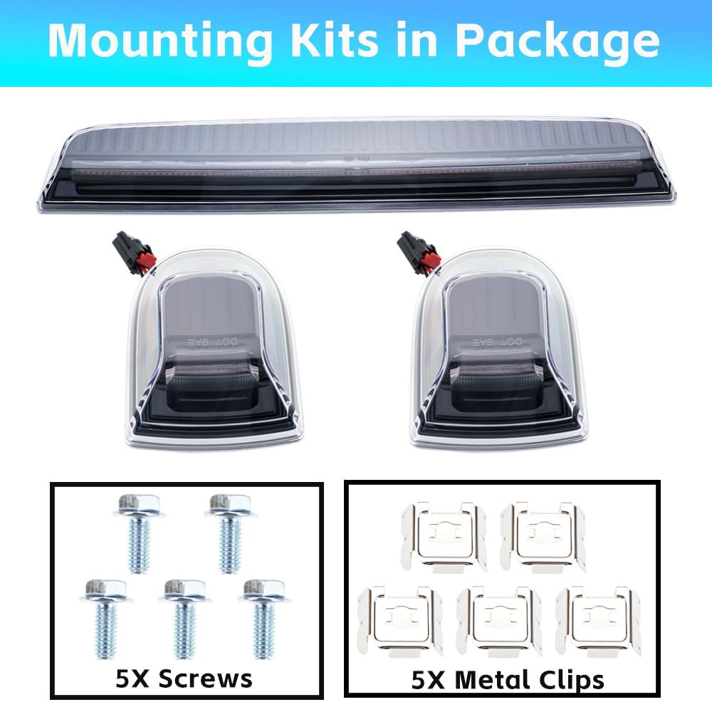 LED roof cab clearance marker lights with clear or smoked lenses, white or amber LEDs for your 2020-2026+ GMC Sierra HD & Chevy Silverado HD 2500 3500 truck. The LED cab lights are 300% brighter than stock, perfectly diffused for a uniform glow, completely plug & play, and a breeze to install! Simply remove the screws from your existing cab lights, unplug them, plug the new cab lights in, then screw them back in. The new cab lights are IP67 waterproof rated against rain, snow, dust and have the screw hole within the assembly to ensure that no leaks occur. They also include new gaskets with an adhesive backing.