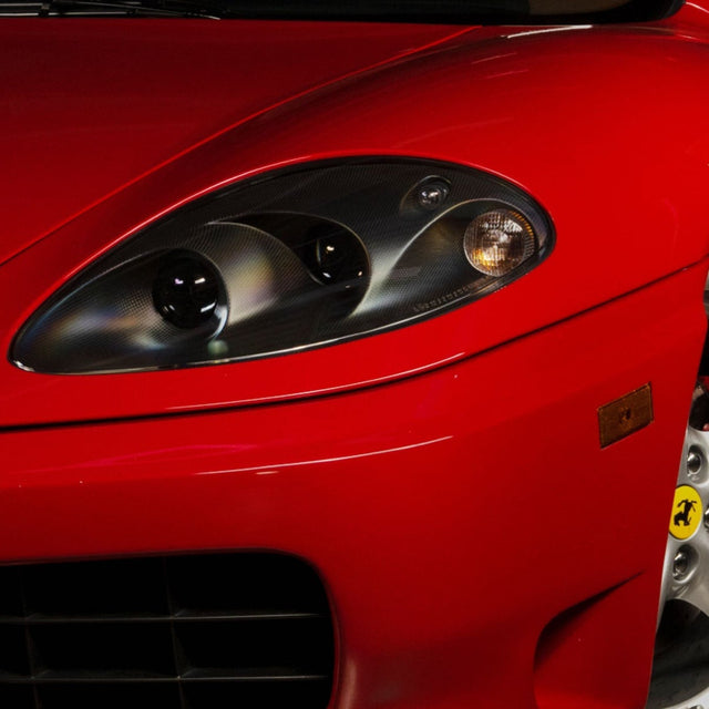 Plug & play Bi-LED Projector headlights for your 1999-2005 Ferrari 360 Modena (Coupe, Spider, Challenge Stradale, all models) with matte carbon fiber internals (identical to the Enzo & Scuderia headlights) and LED projectors that are 300% brighter than stock! We also have unsealed paint-ready versions if you would like to paint match them. These headlights are 100% plug and play and use all factory connectors for both for LHD and RHD US-Spec Ferrari 360s and Euro-Spec Ferrari 360s.