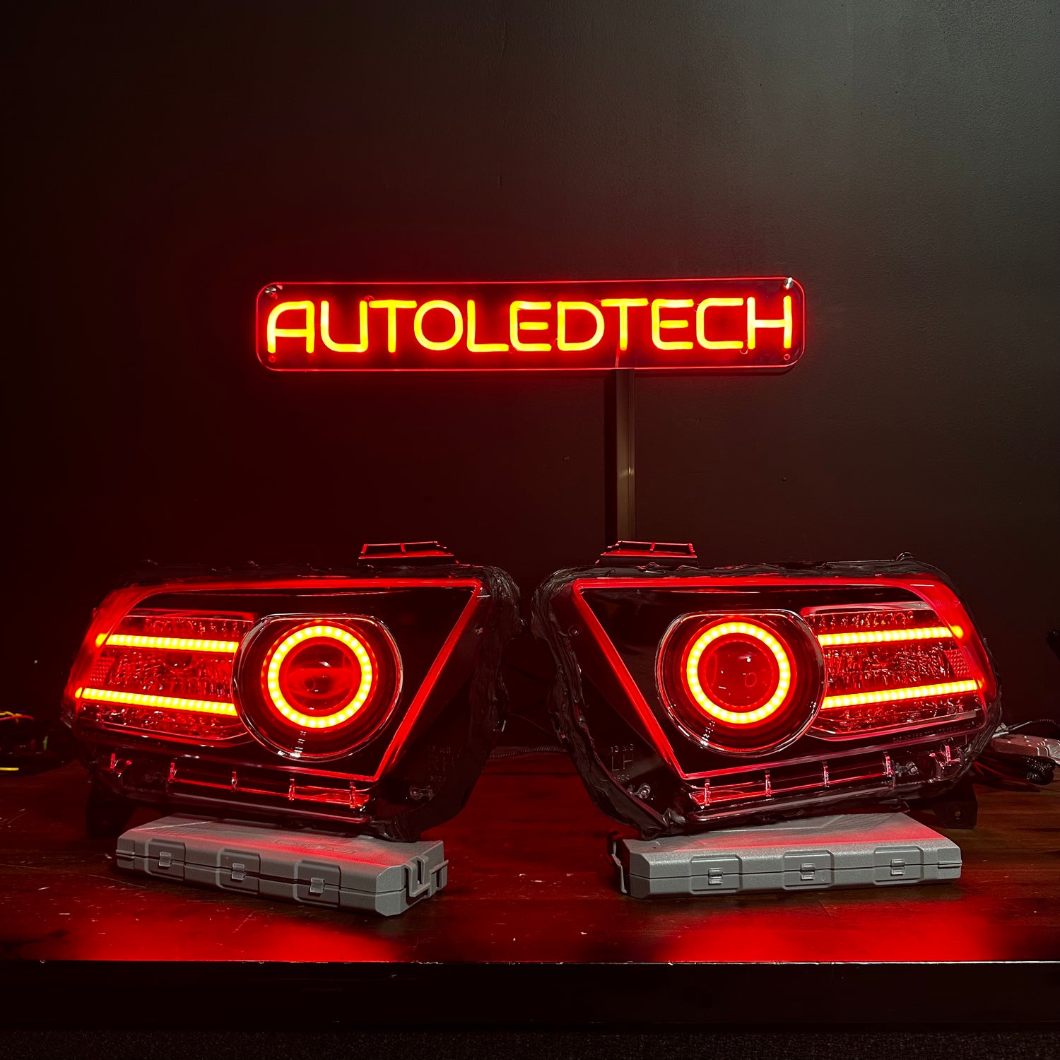 - 1 Pair 2010-2014 Ford Mustang RGBW or Color-Chasing DRL Headlights Housings