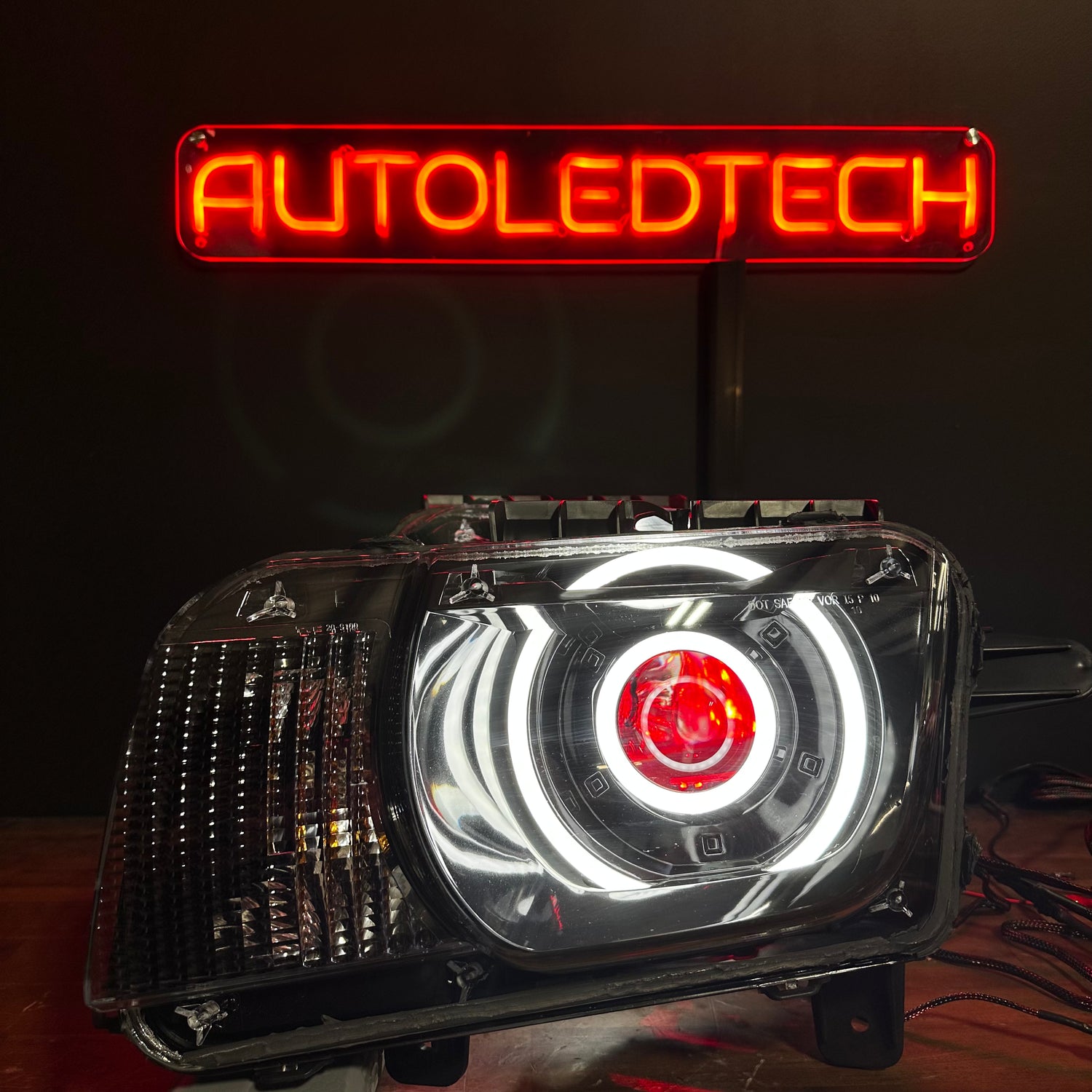 - One pair 2010-2015 Camaro headlight housings with large halo and smaller projector halo installed