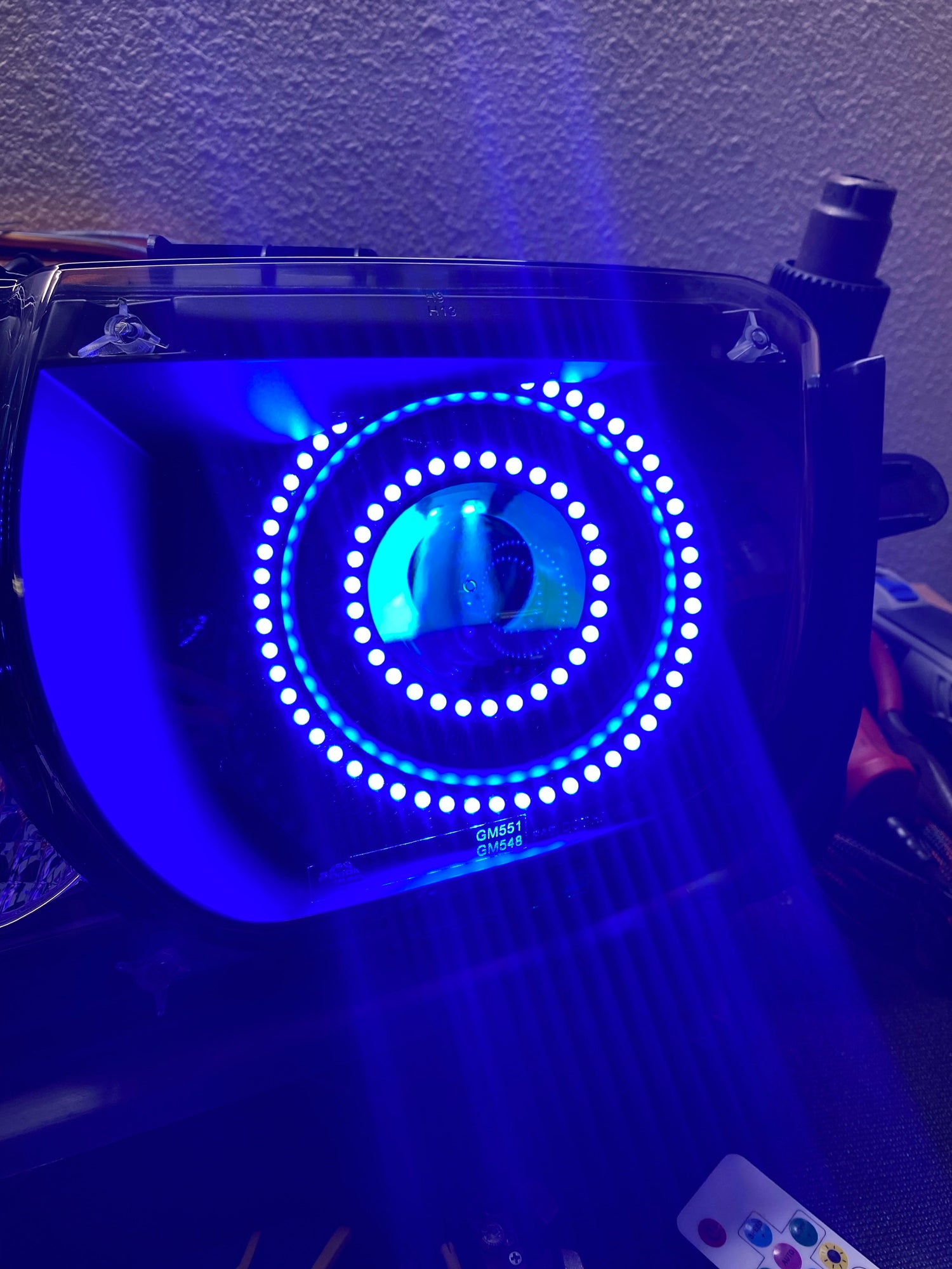 Projector halos are LED halo rings (typically circular) that go around the projector in your headlights. The projector is the area/piece where your headlight bulb shines out of.