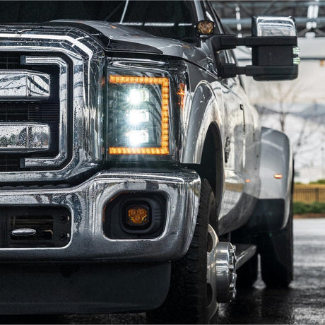 2011-2016 Ford Super Duty F250 White Amber XB LED DRL Projector Headlights