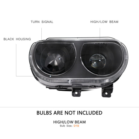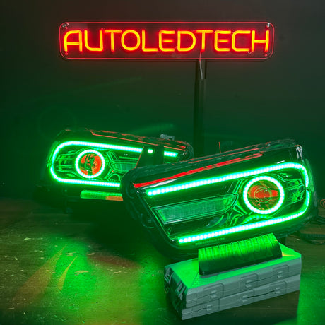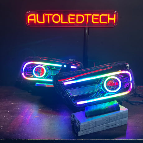 2008-2014 Dodge Challenger RGBW Color-Chasing LED Halo DRL Projector Headlights - 2015+ Style Design
