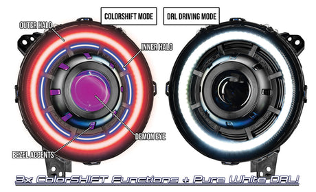 2018-2025+ Jeep Wrangler Gladiator JL JT RGBW Flow Series LED Projector Halo Headlights