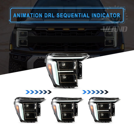 2021-2023 Ford F150 Amber LED DRL Projector Headlights