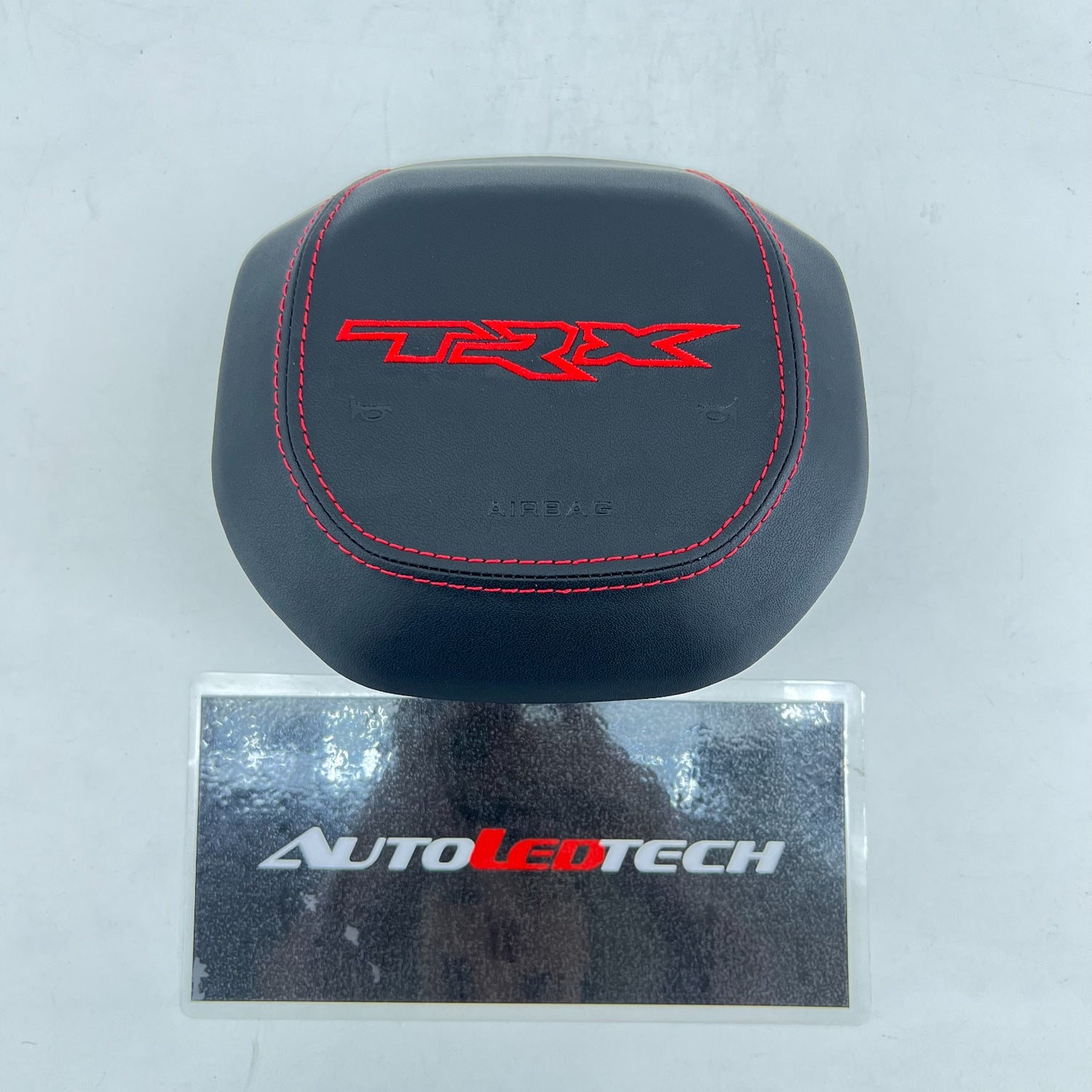 Customizable leather or alcantara/suede airbag covers for your 2019-2024 Ram TRX 1500 are 100% hand built to your specifications! Choose your finish material and color (smooth leather or alcantara/suede), outer stitching color (can be single color or dual), and center logo design (TRX or Trex head stitched, factory emblem, or custom stitched logos). Please allow an estimated 4 weeks for your custom airbag cover to be hand-built!
