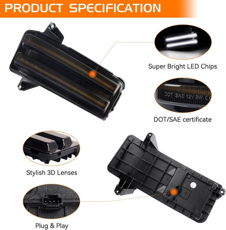 2020-2026+ GMC Chevy Sierra Silverado Smoked LED Mirror Lights
