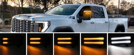2020-2026+ GMC Chevy Sierra Silverado Smoked Switchback LED Mirror Lights