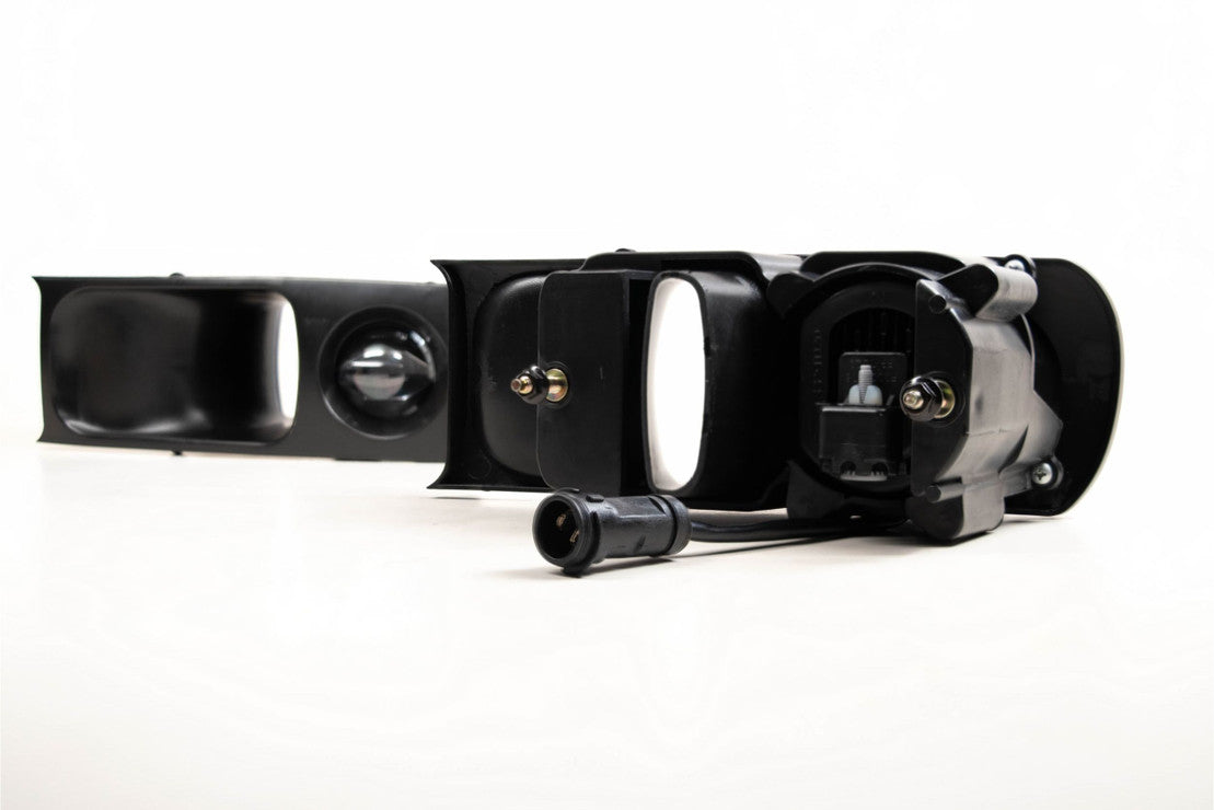 Bi-LED DRL projector headlights for your 1964-1994 Porsche 911 912 964 feature a classic white or modern white LED DRL design inspired by the Porsche 992 generation headlights with an ultra-bright Bi-LED projector as the headlights! These Morimoto LED headlights will outperform your OEM headlights and look much better doing so too, with the classic white having a 107% increase (550 lux [Halogen] to 1,140 lux) in low beam performance and a 109% increase (660 lux [Halogen] to 1,380 lux) in high beam performance while the modern white boasts a 400% increase (550 lux [Halogen] to 2,750 lux) in low beam performance and a 387% increase (660 lux [Halogen] to 3,220 lux) in high beam performance.. These are a direct plug-and-play solution for all 1964-1994 Porsche 911 912 964 cars, any trim/sub-model! Thats right, give your 1964-1994 Porsche 911 912 964 an instant facelift and upgrade your factory headlights to high performance Bi-LED projector headlights by simply swapping them out with these, no complicated wiring required! Contact us for custom paint options, demon eyes, or to add color-chasing RGBW DRLs. Add on the optional 1964-1994 Porsche 911 912 964 LED fog light assemblies which come in a paintable aluminum black material and feature a "classic white" LED temperature. (Replaces Porsche Part #: 96463120300, 96463120400, 96463120375, 96463120475)