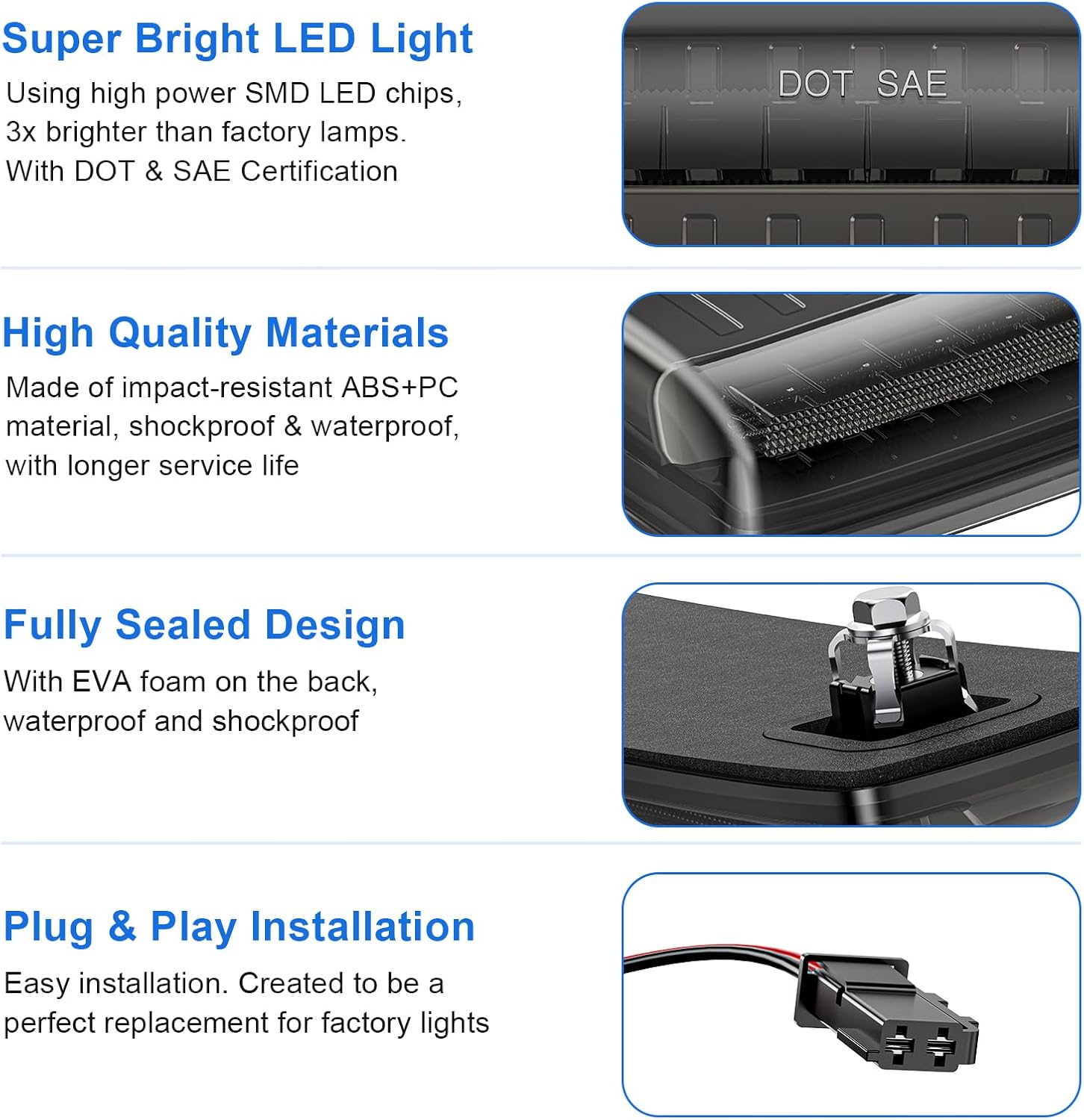 LED roof cab clearance marker lights with clear or smoked lenses, white or amber LEDs for your 2015-20219 GMC Sierra HD & Chevy Silverado HD 2500 3500 truck. The LED cab lights are 300% brighter than stock, perfectly diffused for a uniform glow, completely plug & play, and a breeze to install! Simply remove the screws from your existing cab lights, unplug them, plug the new cab lights in, then screw them back in. The new cab lights are IP67 waterproof rated against rain, snow, dust and have the screw hole within the assembly to ensure that no leaks occur. They also include new gaskets with an adhesive backing.
