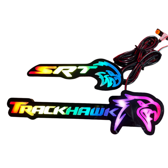 Series LED Emblem Badge SRT Hellhawk Logo - Selected Controller - Handheld wireless controller or Bluetooth app controller. EMBLEMS MUST HAVE A CONTROLLER TO FUNCTION. Controllers come with hooped power connectors, inline fuse, and quick connect for emblem